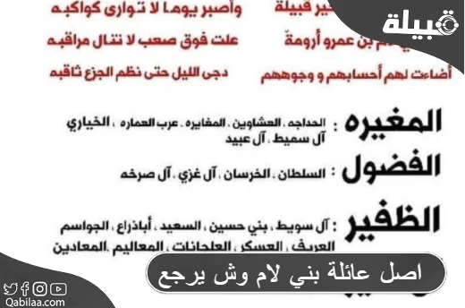 بينما نتابع استعراض تفاصيل اصل عائلة بني لام، سنذكر فروع هذه القبيلة التي نشأت منها: