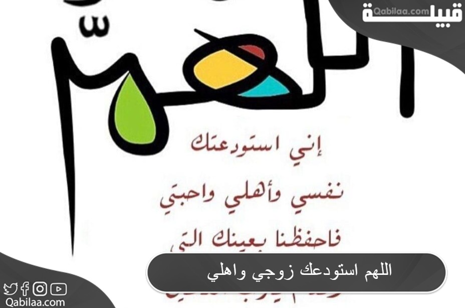 اللهم إني أستودعك زوجي وأبنائي في ودائعك فهم أعز الناس على قلبي، اللهم قربهم إليك قرب المحب المطيع واحفظهم لي من الهم واصرف عنهم كل أمر عسير.
