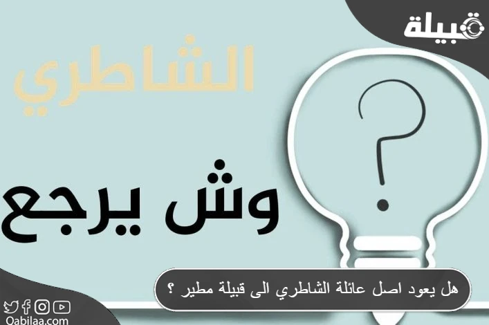 الاعتزاز والفخر بالانتماء لأحد العوائل ذات التاريخ العريق بالمملكة يدعو بالطبع إلى الشعور بالعزة والكرامة، وقد أوضح علماء الأنساب والمؤرخون حقيقة التساؤل حول هل يعود اصل عائلة الشاطري الى قبيلة مطير ؟ حيث أن تعد من العوائل ذات النسب العريق والتاريخ الطويل في منطقة شبه الجزيرة العربية.