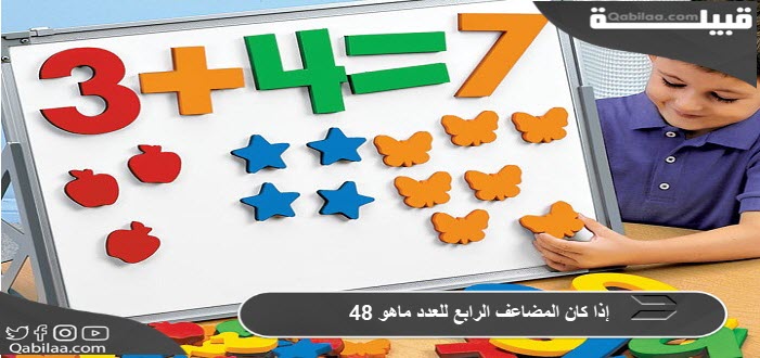 - لذلك، إذا كان المضاعف الرابع لعدد ما هو 48 فإن هذا العدد يساوي 12.
