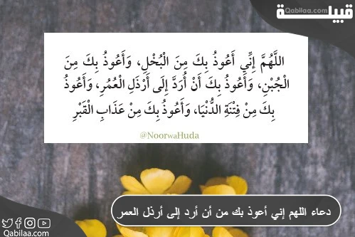 يذل المرض صاحبه ويجعله دائما يحتاج لمن يقوم برعايته والاهتمام به طوال الوقت، فيردد دعاء اللهم إني أعوذ بك من أن أرد إلى أرذل العمر حتى لا يكون عبء على أسرته في الكبر ويشعر بالمذلة في الحاجة إلى من حوله، من الأدعية التي وردت في ذلك ما يلي: