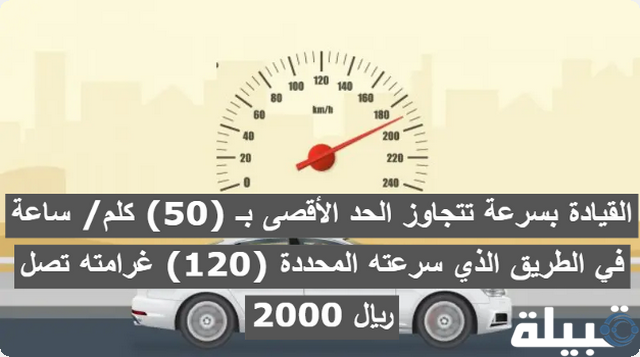 القيادة بسرعة تتجاوز الحد الأقصى بـ (50) كلم/ ساعة غرامته تصل 2000 ريال