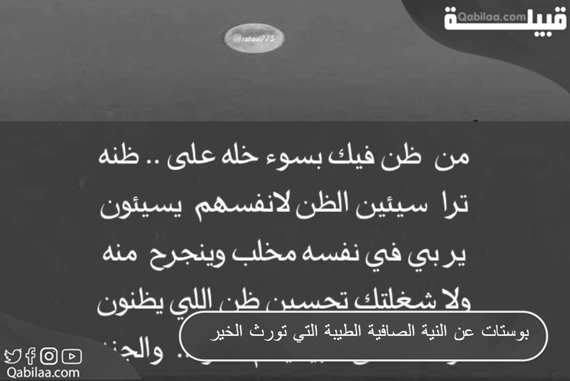 الإنفاق على البيت وحتى أعمال المنزل بالنسبة لربات البيوت، ومن أجمل العبارات عن النية الطيبة التي تورث الخير التي من الممكن استخدامها كبوستات التالي: