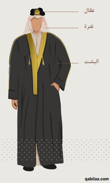 - الرجال: يرتدون (العقال، الغترة، البشت).