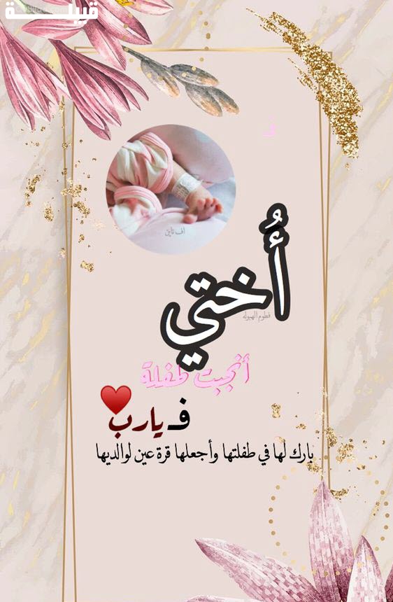 - أجمل التھاني القلبية بقدوم أجمل صبیة، يا رب تكون من كل شر محمية.