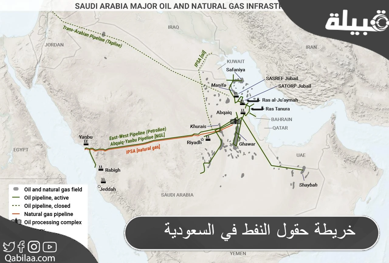 خريطة حقول النفط في السعودية