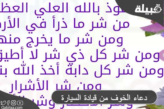 اللهم احفظني كما حفظت يونس في بطن الحوت، اللهم انزع الخوف من قلبي واجعلني أقود سيارتي باطمئنان، اللهم نجني من السوء كما نجيت إبراهيم من النار.