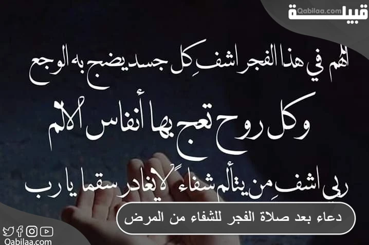 يشعر الفرد بالأسى على نفسه حينما يطول عليه المرض ولا يرحل، وفي الواقع يستطيع الفرد التخلص من مختلف الأمراض التي تحاصره بكثرة التضرع لله سبحانه وتعالى، علاوة على الأخذ بالأسباب والاتجاه إلى الطبيب حتى يعطيه العلاج المناسب للحالة التي يمر بها، ويفضل أن يردد الفرد دعاء بعد صلاة الفجر للشفاء وهو كالتالي: