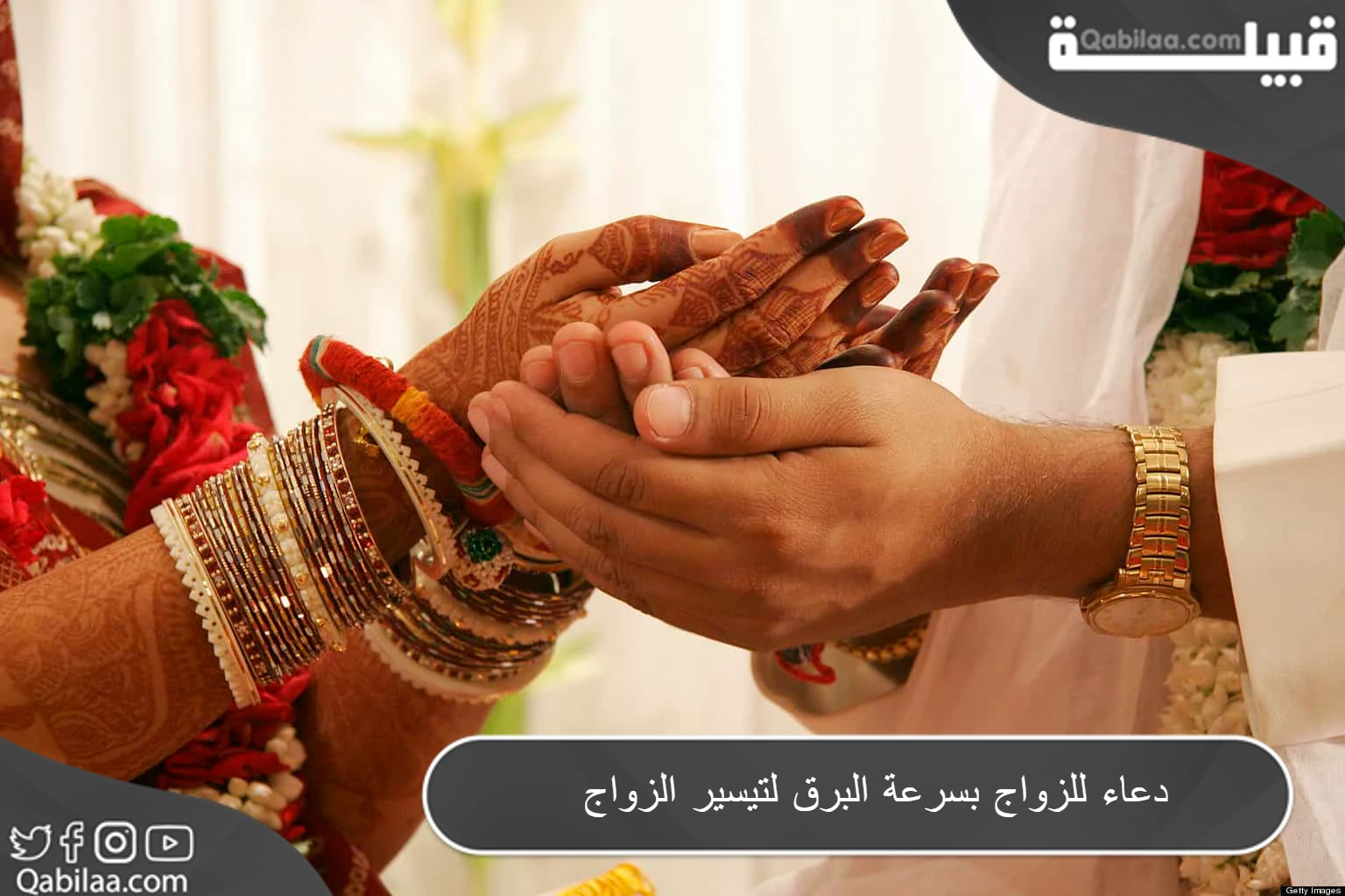 دعاء للزواج بسرعة البرق قل اللهم اني اسألك يا عالم الخفيات ويا من السماء بقدرته مبنية يا من الأرض بعزته مدحية ويامن الشمس بنوره مضيئة ويا مقبلا على كل نفس مؤمنة زكية ويا مسكن الرعب الخائفين واهل التقية ان ترزقني الزوج الصالح ونعم الرفيق المعين، اللهم إني أقسم عليك بلا اله الا الله ان ترزقنا وتقضي حاجتنا يا الله.