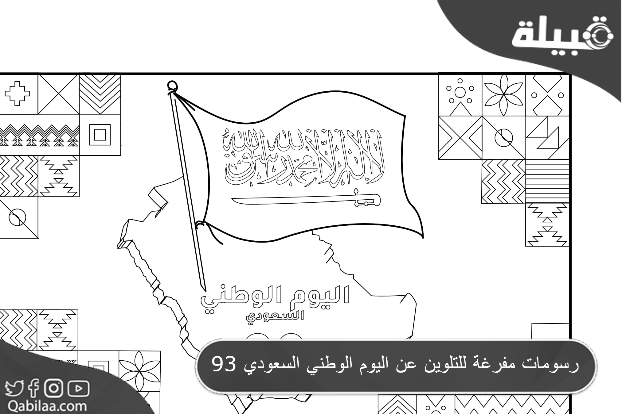 يُمثل اليوم الوطني السعودي مناسبة وطنية مهمة في المملكة العربية السعودية فهو ذكرى توحيد الوطن تحت راية واحدة وإدارة واحدة تعمل لمصلحة الجميع لتحقيق التطور والازدهار والعيش الكريم لجميع مواطنيه، ويحتفل السعوديون بالداخل والخارج خاصة الأطفال من خلال العديد من الفعاليات، ويُمكن الاستفادة من رسومات مفرغة للتلوين عن اليوم الوطني السعودي 93 .
