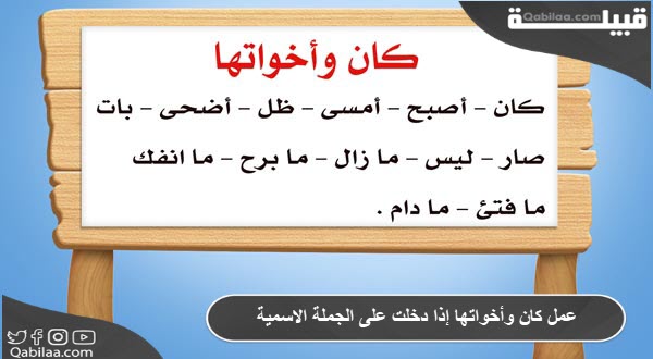- من بين هذه الأخوات الناقصة: “أصبح، أضحى، ظل، أمسى، بات، صار، ليس، ما زال، ما برح، ما انفك، ما فتئ، وما دام“.