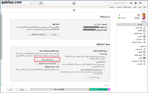 النسخ الاحتياطي للواتس أب عبر أي تونز