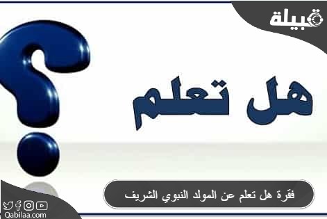 من المتعارف عليه أن فقرة هل تعلم من أهم الفقرات الإذاعية التي تزود الطلاب والحضور بالمعلومات الجديدة.. لذا وجب العناية بها على النحو المطلوب، وإليكم معلومات عن المولد النبوي الشريف عبر التالي.