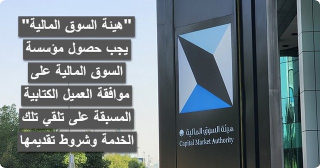 تلزم هيئة السوق المالية مؤسسات السوق المالية بالحصول على موافقة العميل الكتابية المسبقة قبل تقديم أي خدمة مالية هذه الخطوة تأتي كجزء من الجهود المبذولة لحماية حقوق المستثمرين.