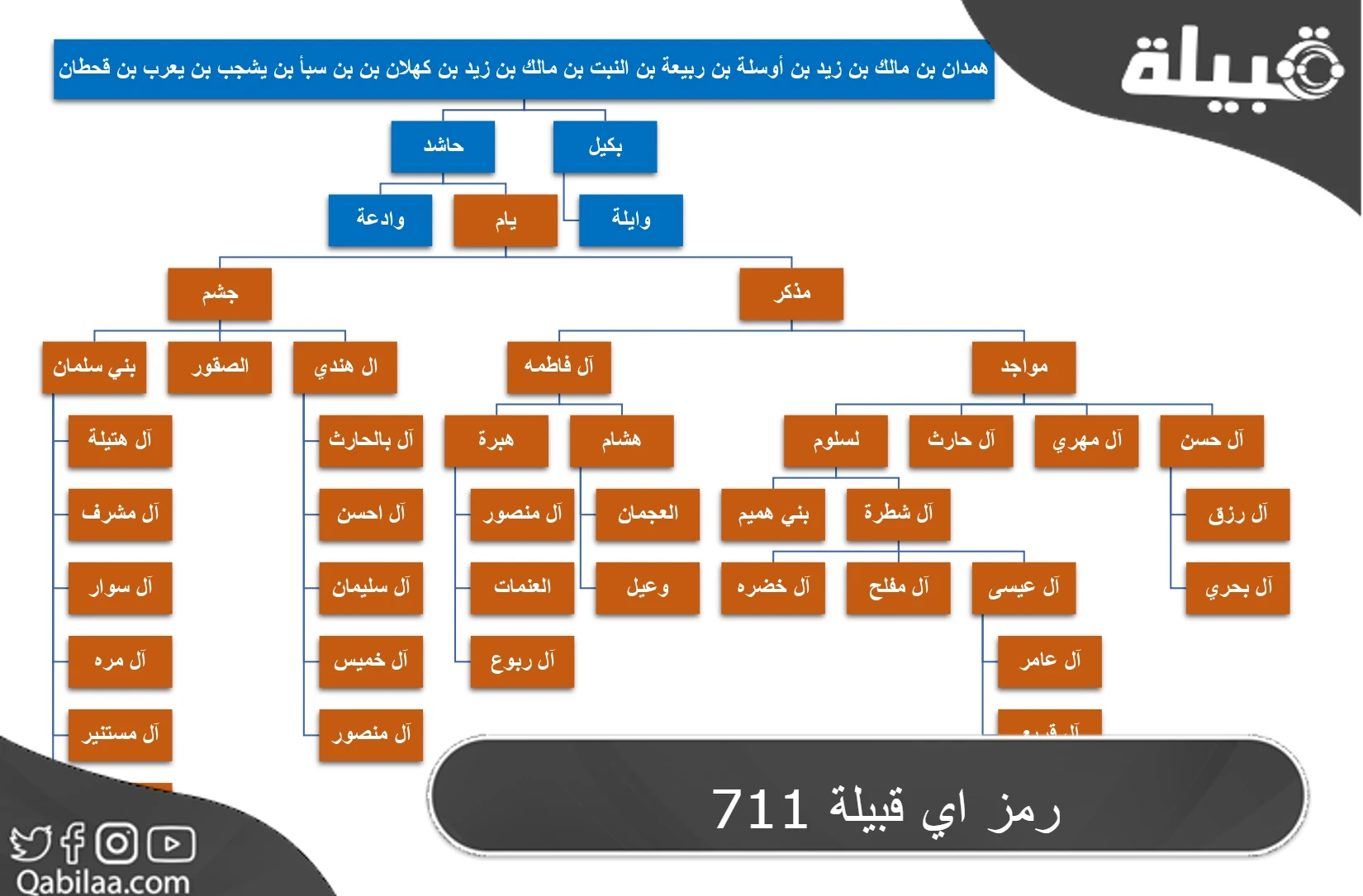 في قُبالة التعرف على 711 رمز اي قبيلة تتم الإشارة إلى أنها ترجع إلى القبائل الهمدانية السبئية، ويلزم العلم أن أكثر الأفراد يعودون إليها ويقطنون داخل منطقة نجران الموجودة شمال اليمن، والآن نجد أن أبناء هذه القبائل يتواجدون داخل الإمارات العربية والمملكة البحرينية.